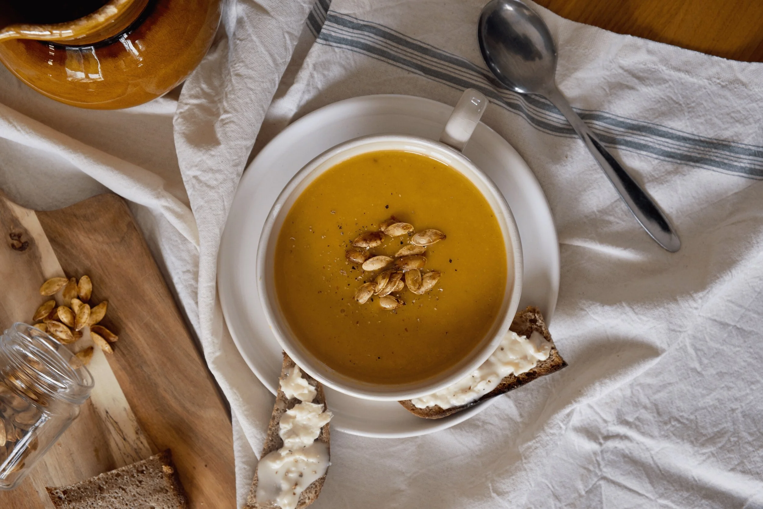 Veloute Epice De Butternut Carottes Pommes De Terre Et Tartines De Gorgonzola Les Nouilles A La Compote